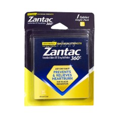 Zantac 360 Heartburn Relief, card of 1 tablet